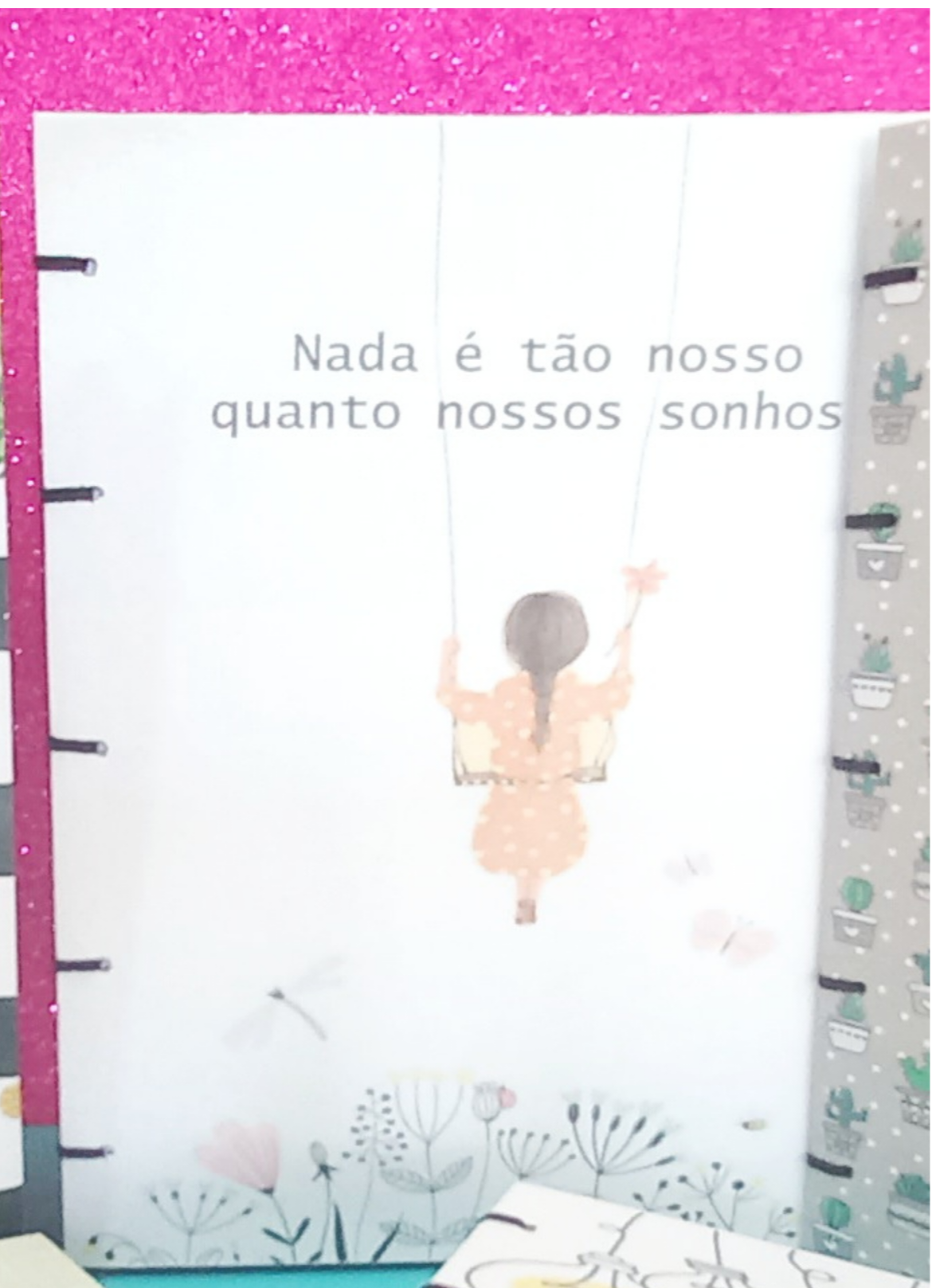 Nesta opção a ilustração é com a frase motivacional para inspirar seu dia-a-dia a colocar aquela ideia maravilhosa no papel: "Nada É Tão Nosso Quanto Nossos Sonhos"